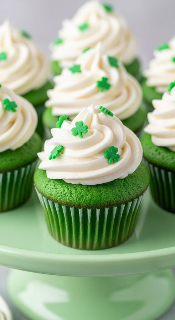 These green velvet cupcakes are just as delicious as they are eye-catching. With a rich and moist texture, they’re topped with a generous swirl of cream cheese frosting and decorated with green sprinkles or edible glitter. A perfect addition to any party spread!